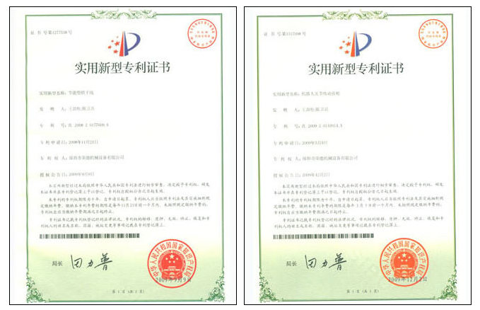 榮德機(jī)器人一直致力于自動(dòng)噴涂行業(yè)的發(fā)展,20年來(lái)專注于自動(dòng)噴涂設(shè)備的研發(fā)和生產(chǎn),在行業(yè)內(nèi)獨(dú)樹(shù)一幟,不斷開(kāi)發(fā)新的產(chǎn)品,引領(lǐng)噴涂行業(yè)自動(dòng)化升級(jí)。榮德每年投入銷售額的6%以上作為研發(fā)費(fèi)用,目前為止,獲得20多項(xiàng)國(guó)家專利,以及各類獎(jiǎng)項(xiàng)。下面為榮德相關(guān)專利的簡(jiǎn)單介紹。