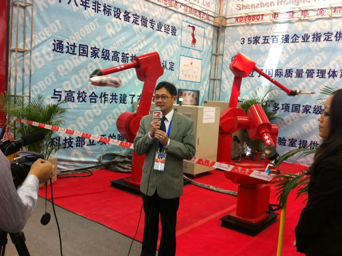 榮德張總:我們隆重推出了具有自主知識(shí)產(chǎn)權(quán)的三種型號(hào)的噴涂機(jī)器人,分別是RDPT01、RDPT02、RDPT03,這都是我們公司自主研發(fā)的民族品牌,目前已銷售到全國(guó)各地共一百多臺(tái),而且客戶使用都很好。我們最大的優(yōu)勢(shì)是,我們本身是做噴涂設(shè)備的,對(duì)噴涂更專業(yè),也能提供噴涂的配套設(shè)施,而國(guó)外的大品牌雖然在品牌知名度上比我們強(qiáng),但對(duì)于配套的服務(wù)以及售后的快捷方面不如我們。再說(shuō)我們的技術(shù)也達(dá)到了國(guó)際先進(jìn)、國(guó)內(nèi)領(lǐng)先的水平,所以更具競(jìng)爭(zhēng)力。