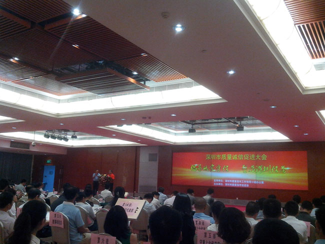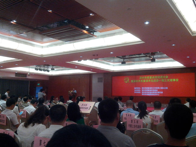 會議由深圳市強市促進會馬會長主持,深圳市市場監(jiān)督管理局夏局長對深圳市質(zhì)量大會致開幕詞,深圳市政協(xié)副主席也發(fā)表了熱情洋溢的講話。