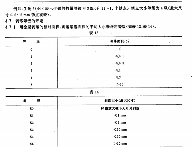 4.如漆膜有數(shù)種破壞現(xiàn)象,評定等級時,應按按破壞最嚴重的一項評定。