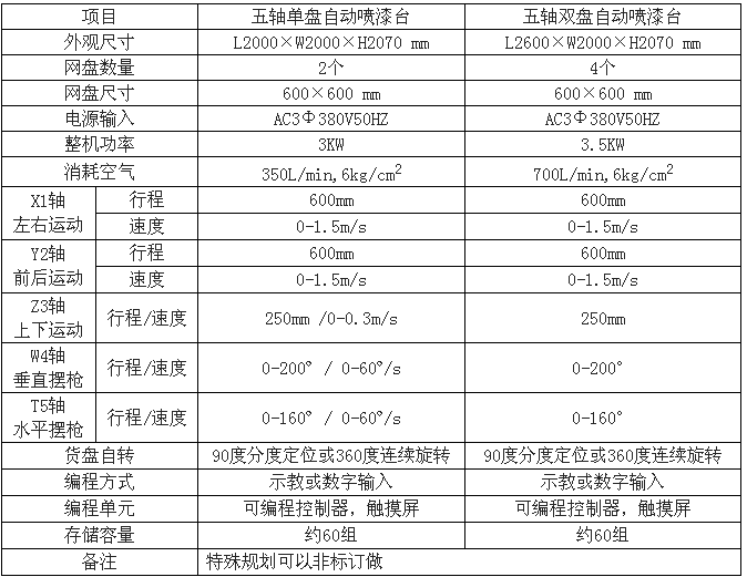 榮德五軸自動噴涂機技術(shù)參數(shù)